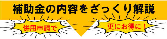 | 補助金最大額 | 一戸当たり200万円 | 40万円~60万円 | 6万~16万円 |