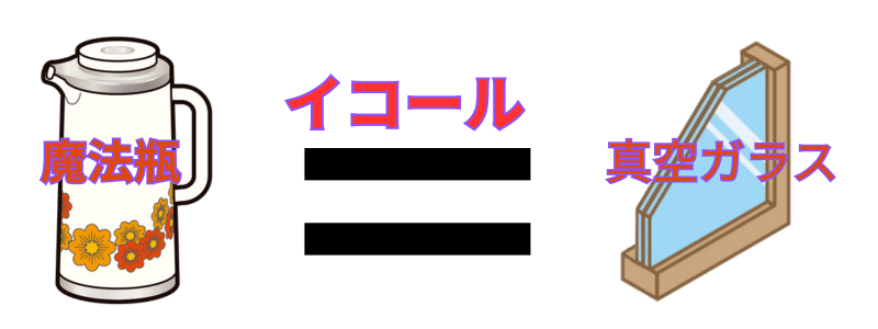魔法瓶に例えると、魔法瓶は外筒と内筒の間が真空状態になっています。そのため、温かい飲み物や冷たい飲み物を入れて長時間放置しても、ほとんど温度が変わりません。