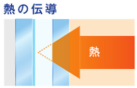 通常の複層ガラスは空気やガスの層によって、熱の伝導や対流を抑えることで断熱性を獲得しています。しかし、気体があることによって少なからず熱の伝導や対流は起こります。一方、真空ガラスは真空状態では理論上、熱の伝導も対流も起こりません。