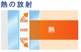 物体から発生する熱エネルギーが他の物体へ移動する「放射」を抑えます。