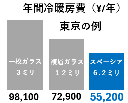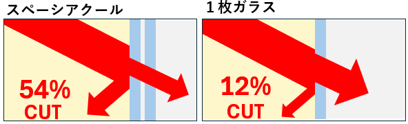 スペーシアは一枚ガラスの約4倍の断熱効果が得られます。